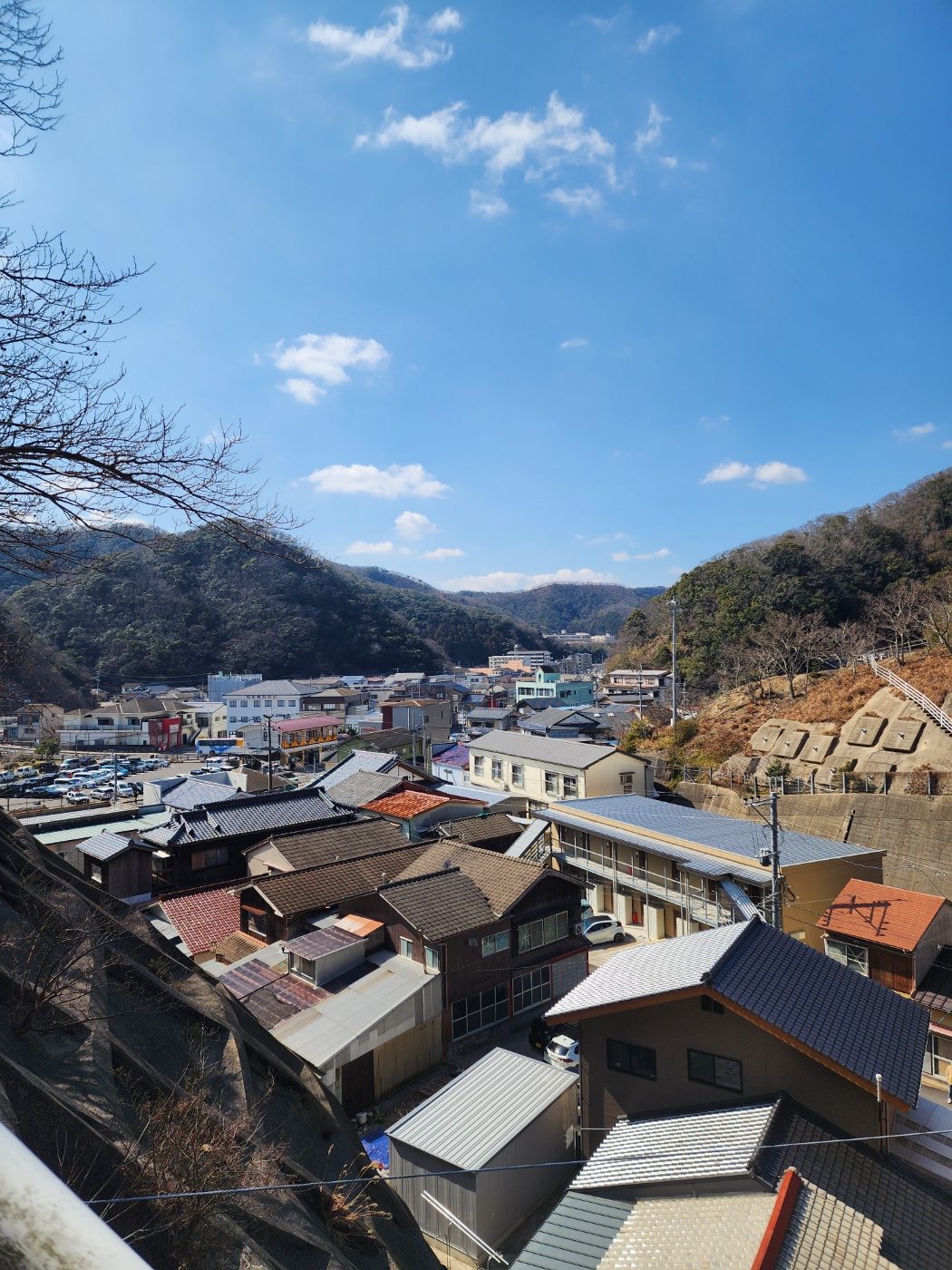 저희는 조그마한 동네 뒷산에 올랐는데요, 그곳에서 신사가 있어 잠시나마  멋진 풍경을 볼 수 있었습니다